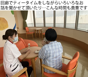 看護部は「人と人とのつながりを大切にし、温かく、誠実な看護を提供します」を大切に日々の看護を行っております。患者さんの心に寄り添い、共に歩む看護を大切にしています。